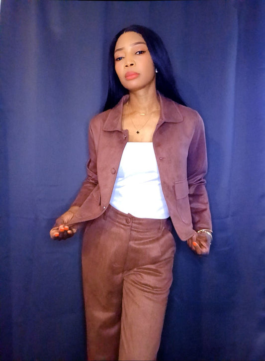 Ensemble pantalon bas large et chemisier imprimé beige+ ceinture beige