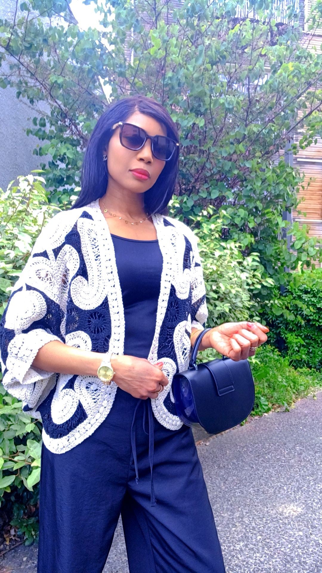 Gilet en maille noir et beige, une coupe décontractée et tendance , facile à assortir, mette votre morphologie en valeur. Convient pour les sorties d'été.