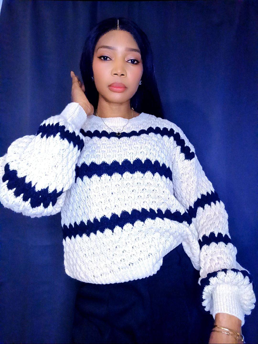 Pull beige rayures noires